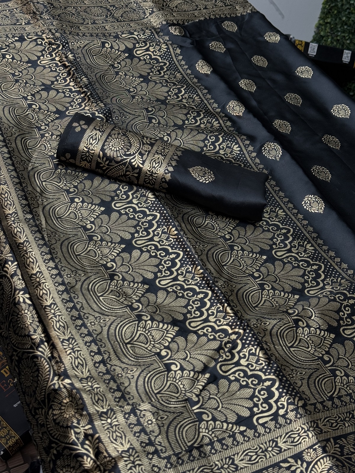 0rginal Benaroshi Silk saree and bluse peice BLACK 3