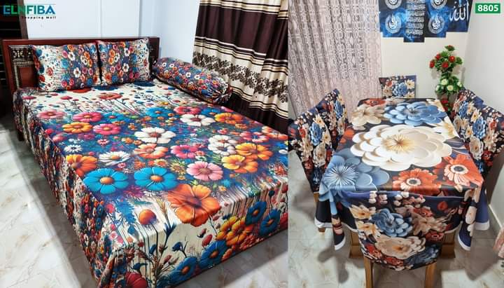 মোট 11 পিস এর কম্বো সেট 3D প্রিন্টেড ৬ পিছ চেয়ার কভার ,ডাইনিং টেবিল কভার এবং বেড শিট03