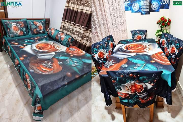 মোট 11 পিস এর কম্বো সেট 3D প্রিন্টেড ৬ পিছ চেয়ার কভার ,ডাইনিং টেবিল কভার এবং বেড শিট04
