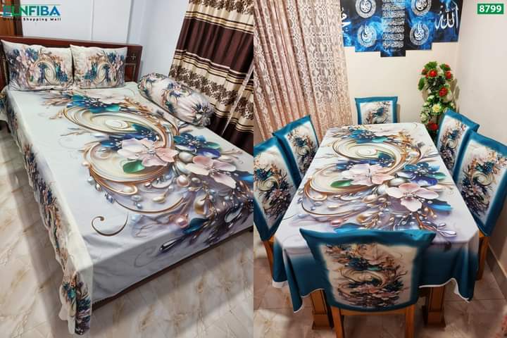 মোট 11 পিস এর কম্বো সেট 3D প্রিন্টেড ৬ পিছ চেয়ার কভার ,ডাইনিং টেবিল কভার এবং বেড শিট06