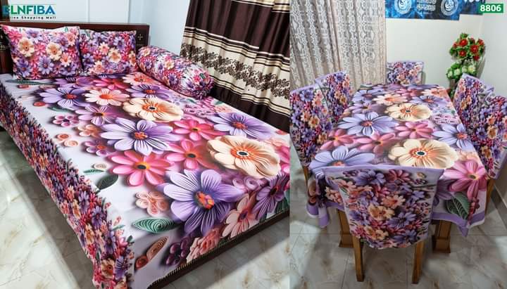 মোট 11 পিস এর কম্বো সেট 3D প্রিন্টেড ৬ পিছ চেয়ার কভার ,ডাইনিং টেবিল কভার এবং বেড শিট08
