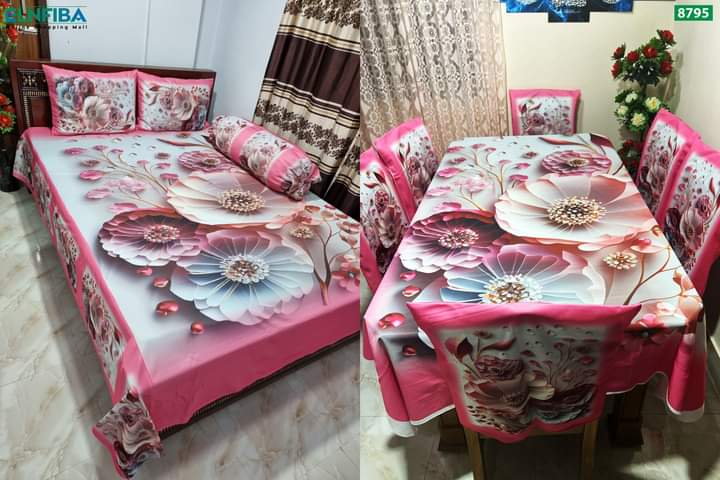 মোট 11 পিস এর কম্বো সেট 3D প্রিন্টেড ৬ পিছ চেয়ার কভার ,ডাইনিং টেবিল কভার এবং বেড শিট12